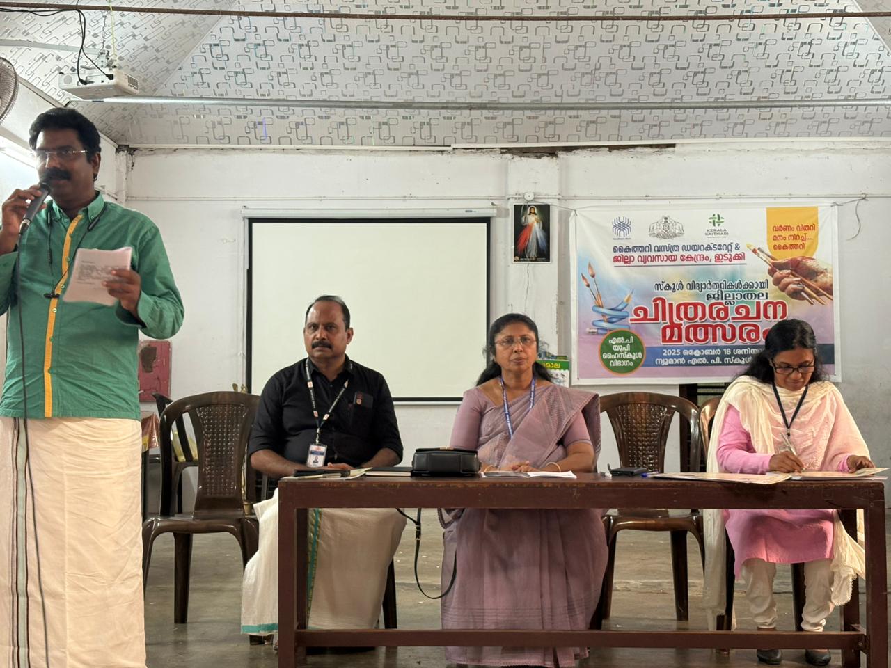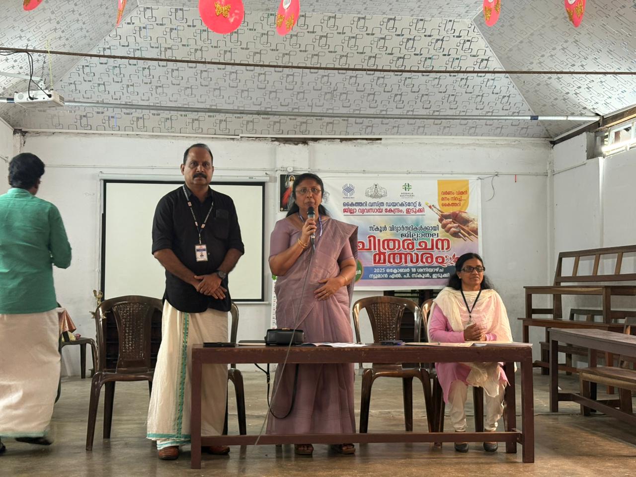 The Directorate of Handlooms and the Idukki District Industries Centre jointly organized a drawing competition for 280 school children across L.P., U.P., and High School categories at Newman L.P. School in Idukki Town on Saturday, October 18, to promote handloom textiles, where winners received cash awards, all participants received certificates, a video on textile manufacturing and a subsequent quiz with prizes for parents were held, and the valedictory function, featuring the presentation of awards by Idukki Deputy Collector (RR) Smt. Suhra P., was presided over by District Industries Centre General Manager Smt. Lisiamma Samuel, with a welcome by Deputy Registrar Shri. Shibushine V.C., a keynote address by Newman L.P. School Headmistress Sister Ansy George, felicitation by various officials, and a vote of thanks by Junior Co-operative Inspector Smt. Shobhamol T.A.