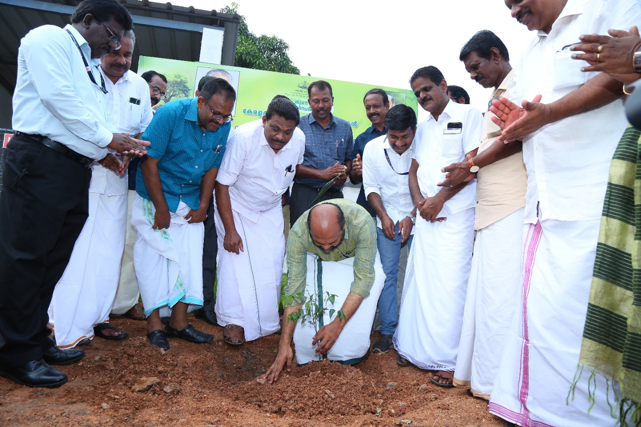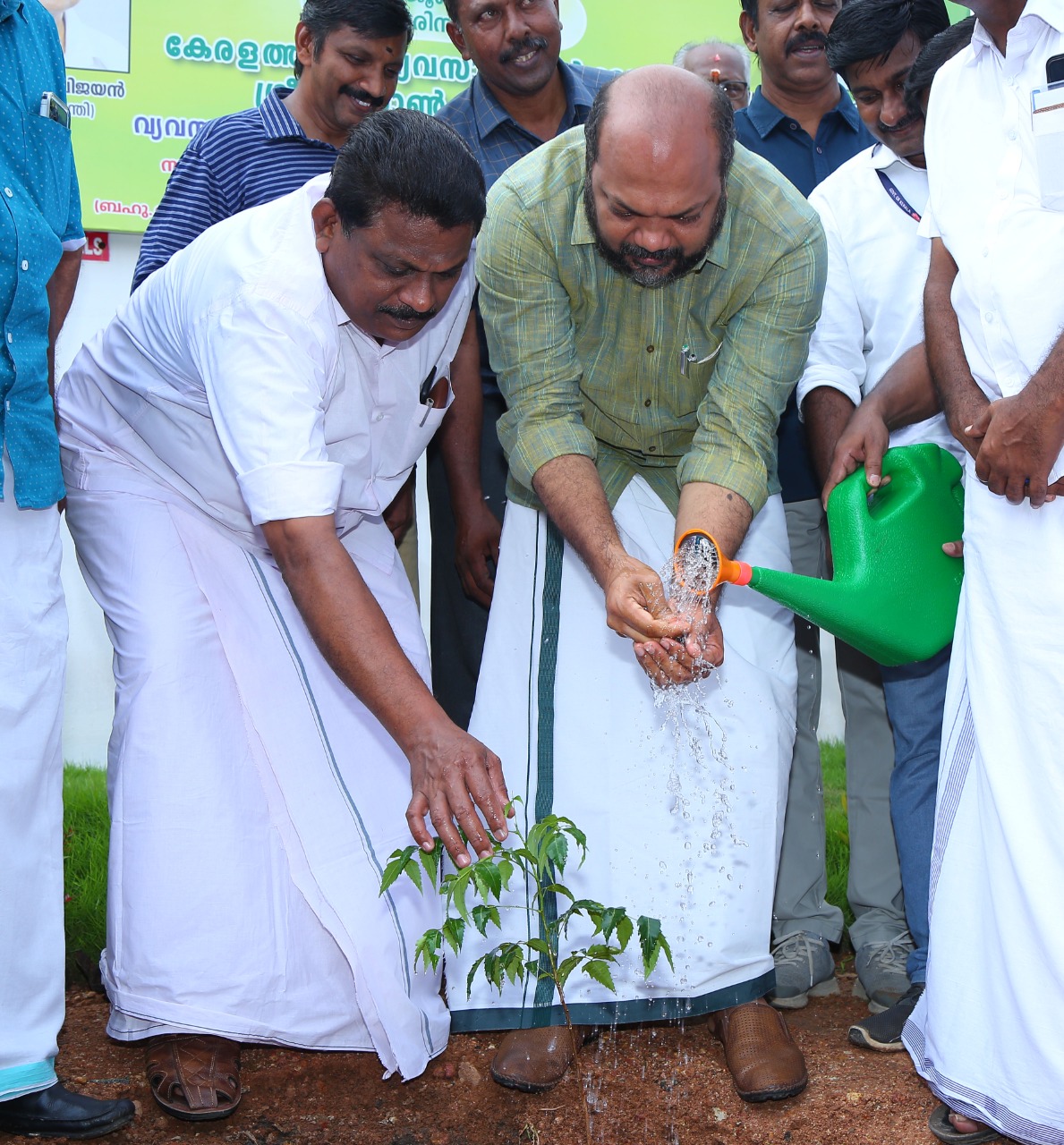 Hon. Minister for Industries, Coir and Law Sri. P. Rajeev planting the tree at Development Area Edayar, Ernakulam on World Environment Day