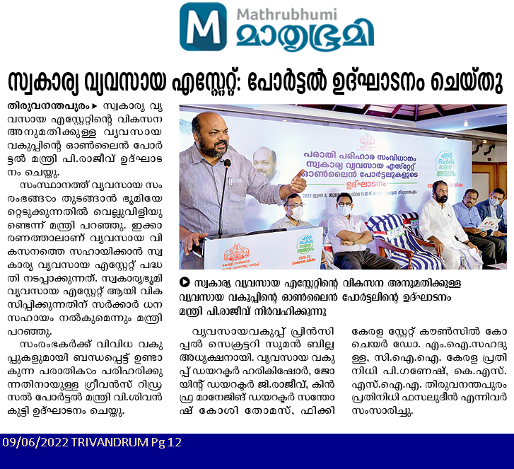 സ്വകാര്യ വ്യവസായ എസ്റ്റേറ്റ്: പോര്ട്ടല് ഉദ്ഘാടനം ചെയ്തു- കൂടുതല് വായിക്കാന്...