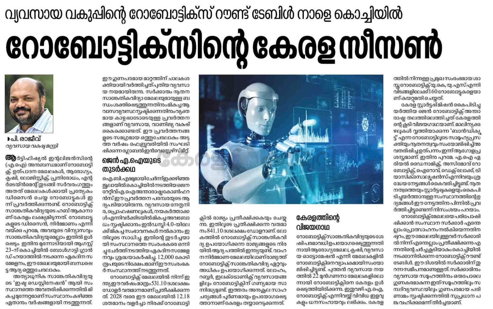 റോബോട്ടിക് മേഖല തൊഴിൽ ദാതാക്കൾ: മന്ത്രി പി. രാജീവ്. കൂടുതൽ വായിക്കാൻ... |