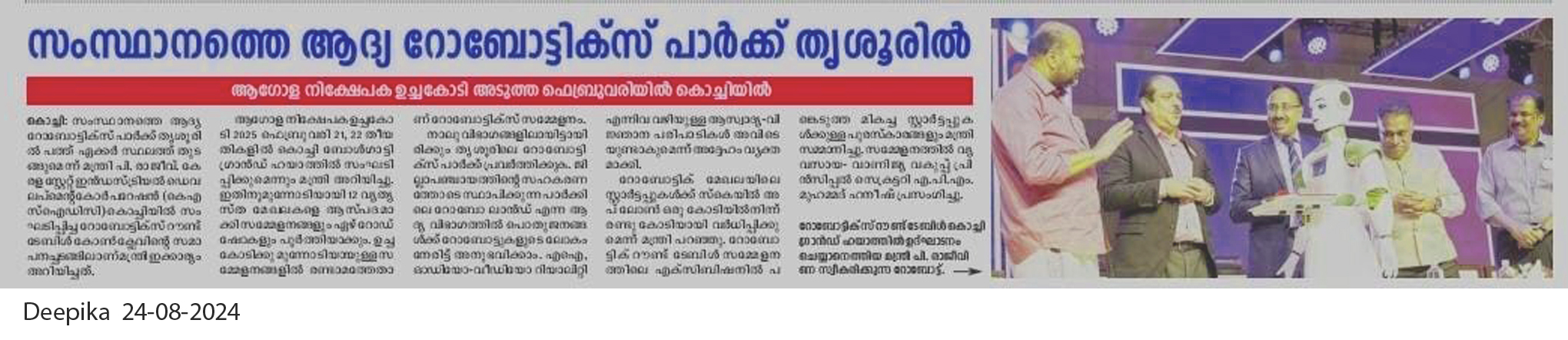തൃശൂരിൽ റോബോട്ടിക്സ് പാർക്ക് വരുന്നു. കൂടുതൽ വായിക്കാൻ... |