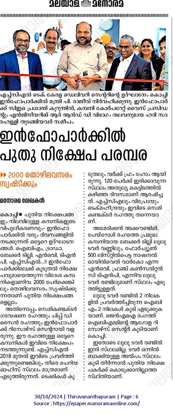 ഇന്ഫോ പാര്ക്കില് പുതു നിക്ഷേപ പരമ്പര |