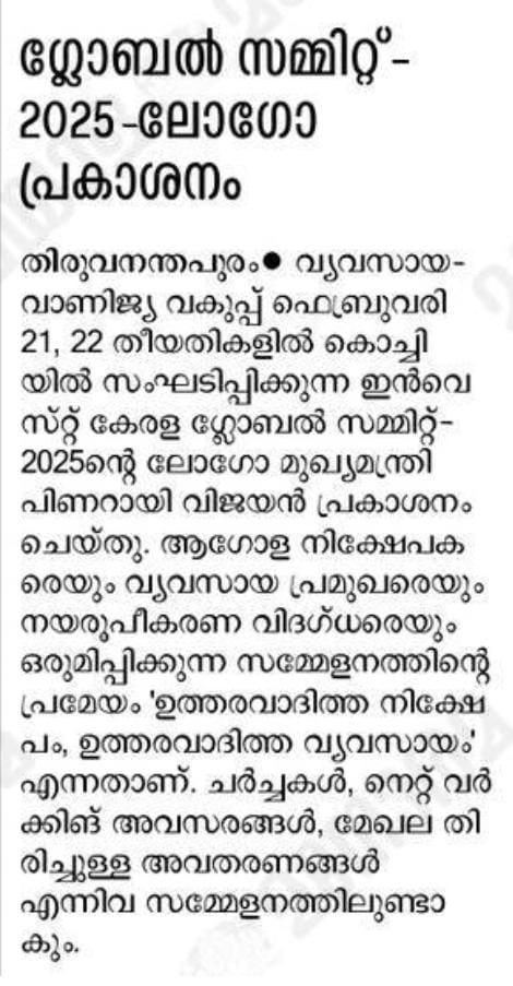 ഇന്വെസ്റ്റ് കേരള ഗ്ലോബല് സമ്മിറ്റ് -2025 കൊച്ചിയില് |