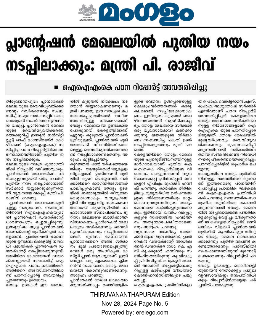 പ്ലാന്റേഷന് മേഖലയില് പുതിയ നയം നടപ്പിലാക്കും: മന്ത്രി പി രാജീവ് |
