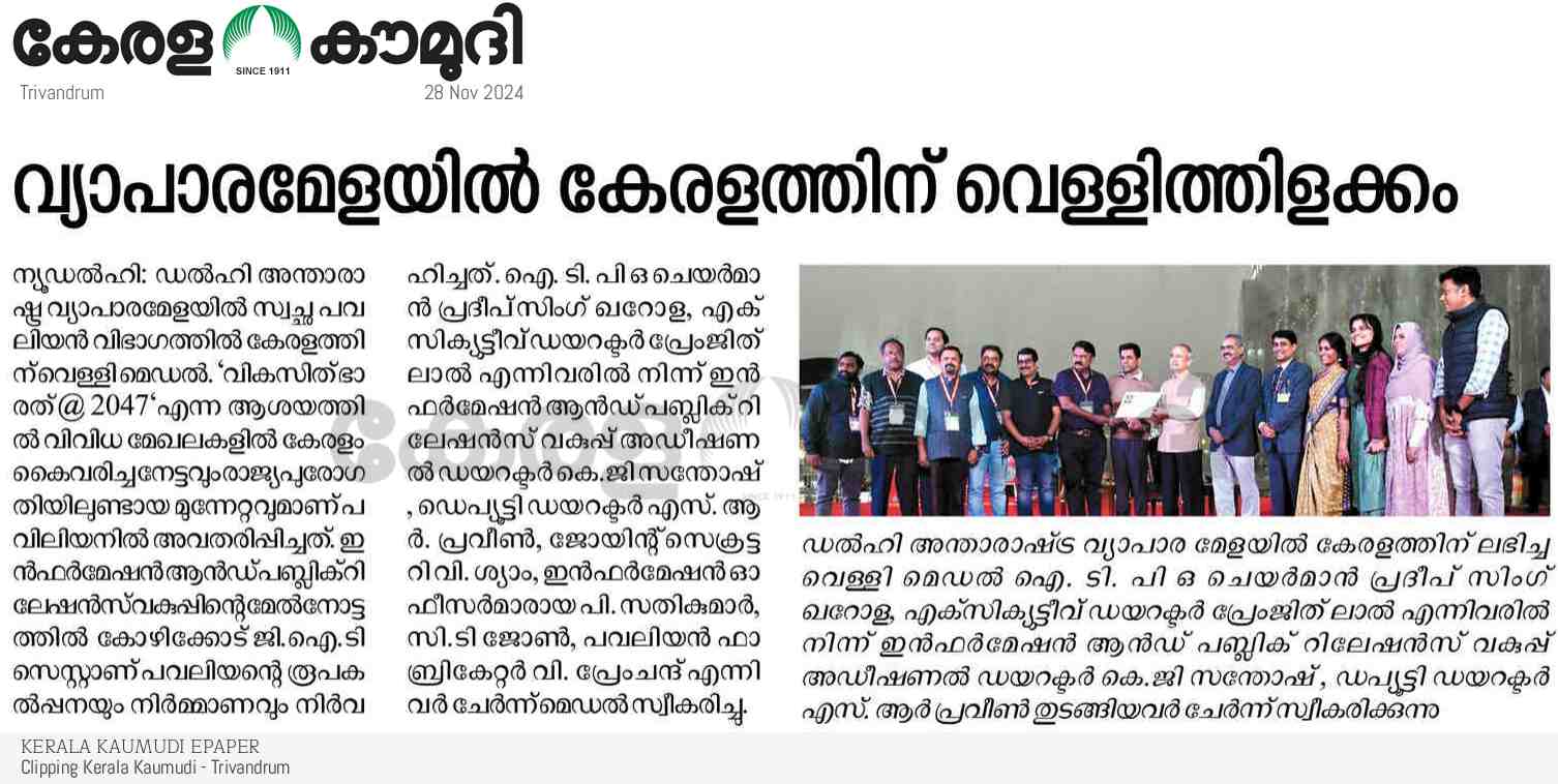 അന്താരാഷ്ട്ര വ്യാപാര മേളയില് കേരളത്തിന് വെള്ളിത്തിളക്കം |