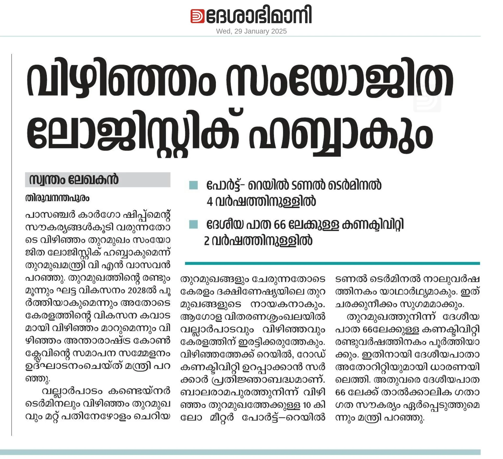 വിഴിഞ്ഞം സംയോജിത ലോജിസ്റ്റിക് ഹബ്ബ് ആകും